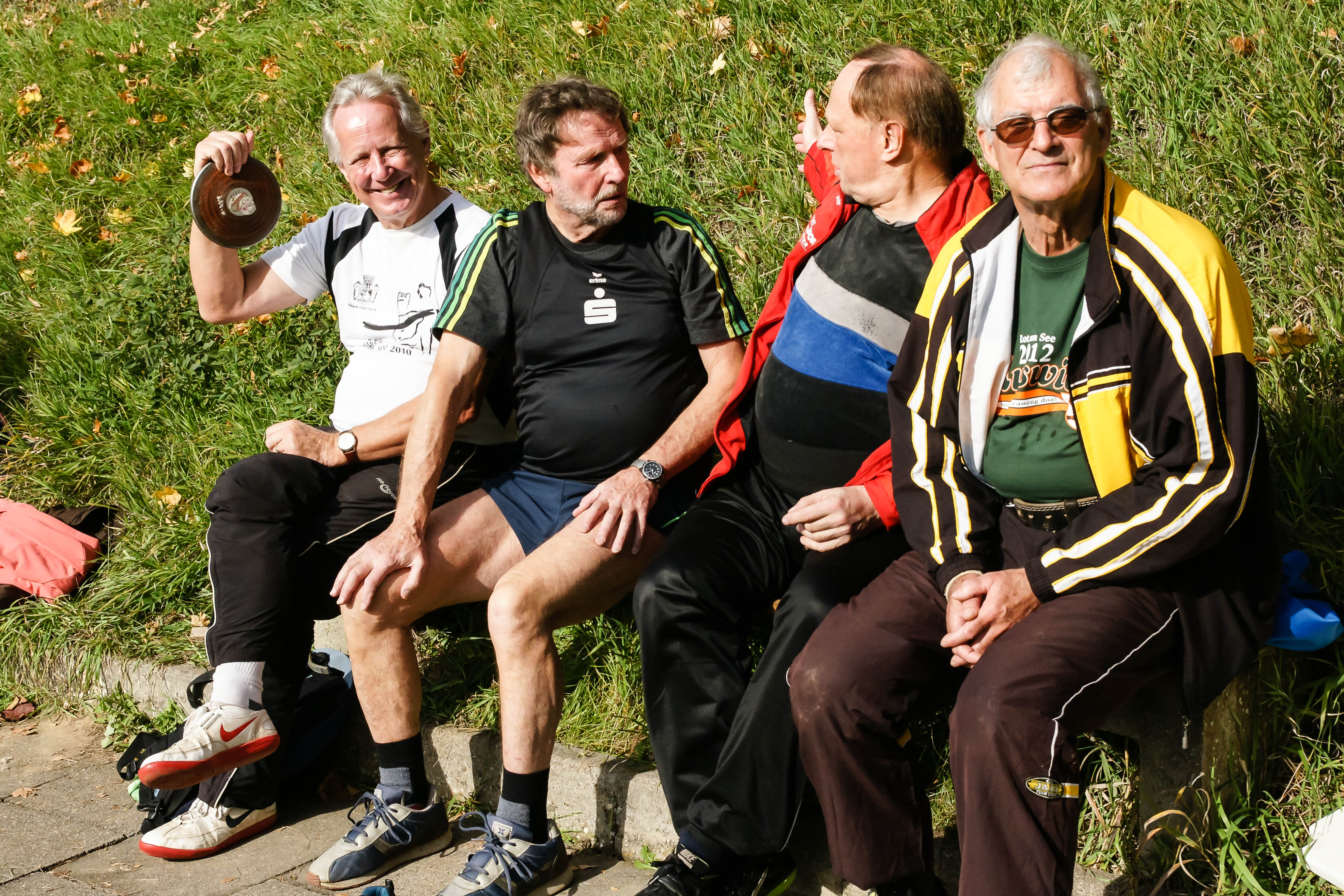 Montag, Oktober 15th, 2012An zwei Tagen im Oktober blicken die Zehnkämpfer Frankens immer wieder gespannt in den Himmel über Flein und hoffen, dass es noch trocken bleibt oder wenigstens nicht mehr regnet, damit sie ihre 10 Disziplinen gut absolvieren können. Trotz des wechselhaften Wetters kamen die beiden Starter der LG Hohenlohe durch und erreichten einige Saisonbestleistungen, die zu den jeweiligen Altersklassensiegen erheblich beitrugen. Harald Michel erreichte im Stabhochsprung PB von 2.20m in der AK 50 und sah auch über 2.40m gut aus, seine im Sprint bereits zugezogene lästige Zerrung im Gesäß ließ aber mehr nicht zu. Nach gutem Hürdensprint, Diskus- und Speerwurf fehlten nur noch die abschließenden 1500m. Lautstark angefeuert von den drei Igersheimer Fans vor Ort lief Harald seine Runden, die ihm mit der Zerrung sichtbar Unbehagen zufügten, und kam in ca. 6.33m ins Ziel. Wo andere aufhören, macht Harald halt weiter, ein echter Kämpfer, Zehnkämpfer eben.