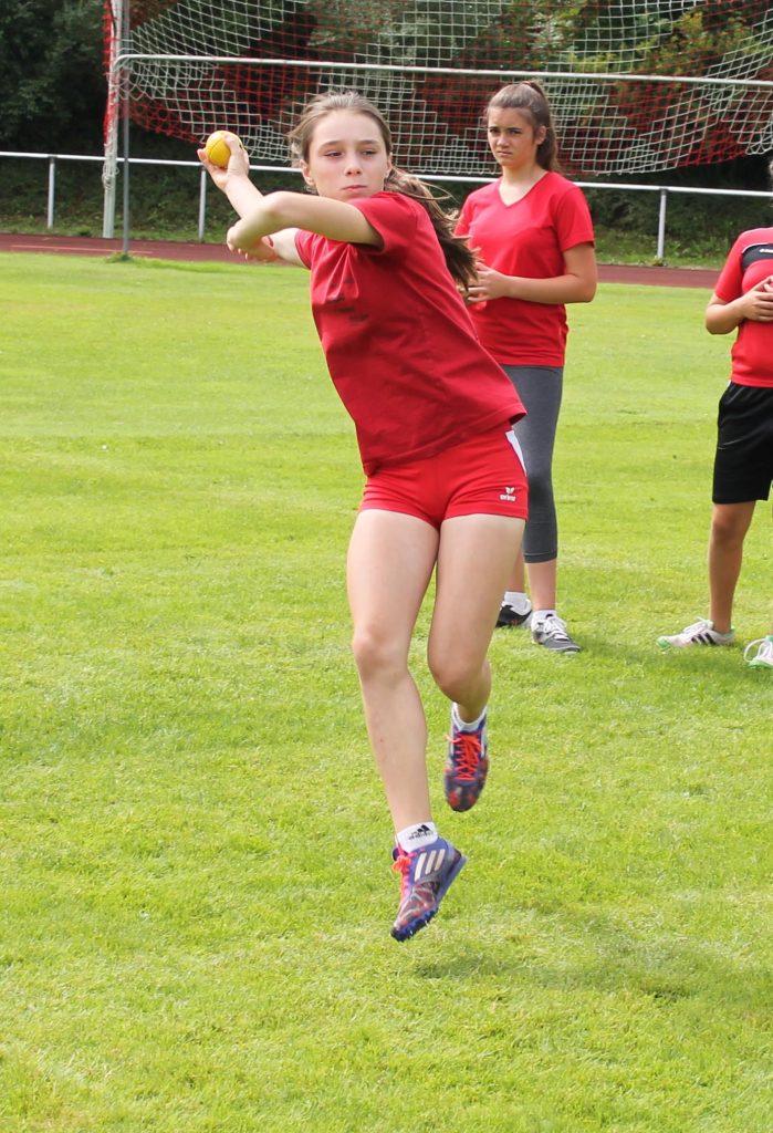 Bild: Madeleine Reuther (W12) beim Ballwurf – technisch sehr gute Wurfauslage