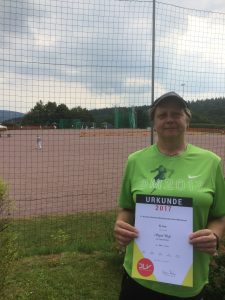 Jetzt war Stärkung mit Currywurst angesagt und warten auf die Endergebnisse. 2241 Punkte und damit eine Steigerung um gut 300 Punkte waren ein sehr schönes Ergebnis, dementsprechend zufrieden fuhr man mit der schön gestalteten 1.Urkunde einer DM nach Hause.