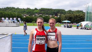 Carlotta Peppel (rechts) von der LG Hohenlohe/1. FC Igersheim konnte die ansteigende Form bei den Titelkämpfen in Leinfelden mit drei Bestleistungen abrufen. Daneben Sophia Quenzer die im Kugelstoßen zu einer neuen PB kam.