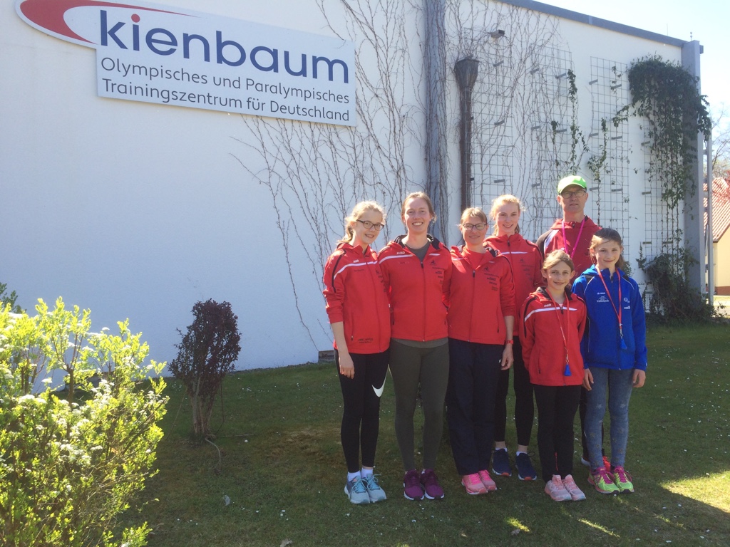 Zur unmittelbaren Saisonvorbereitung reisten Samira Bopp, Marie Brand, Melissa Hofmann, Annette Lehr, Lene Mittnacht und Nele-Maxima Siegl ins Trainingslager nach Kienbaum nahe Berlin. Das Zentrum für olympischen und paralympischen Sport des DOSB verwöhnte uns vom Tag der Ankunft am Mittwoch vor Ostern bis zur Abreise am Ostermontag mit herausragend gutem Wetter. Jeden Tag Sonne, kein Tropfen Regen, sehr angenehme Temperaturen, und ausgezeichnete Sportstätten, die keine Wünsche offen ließen, begünstigten die Umsetzung des voll gepackten Trainingsplans. Da die Gruppe aus Sportlerinnen besteht, die alle einen läuferischen Schwerpunkt haben, standen dementsprechend auch reichlich Laufeinheiten auf dem Plan. Ergänzt wurden diese Einheiten auf der Bahn oder auf der Waldrunde durch Schwimmen und Aqua-Jogging, Ballwurf, Zumba, Gymnastik und Stabilisations-Training, auch die Hasenjagd am Ostersonntag durfte nicht fehlen. Im Speisesaal stand man dann z.B. hinter Shanice Craft oder Christopher Harting am Buffet an und jonglierte sein Tablett dann zwischen den Bundes-Kadern der Leichtathleten, Kanuten oder Volleyballern hin zum Tisch und ließ es sich schmecken. Bis zu 4 Trainingseinheiten pro Tag galt es zu absolvieren, morgens um 07.00 Uhr die erste Einheit und abends um 19.00 Uhr die letzte aktive Maßnahme. Alle zogen hervorragend mit, auch wenn die Beine ab dem 2. Tag nicht mehr so richtig locker werden wollten. Der Abschluss des Trainingslagers war ein kombinierter Test aus 300m Hürden oder 600m flach, abgerundet durch einen Ausdauertest über 2x 2.5km auf der Asphaltrunde im Wald. Hier zeigten alle nach 5 Tagen umfangreicher Belastung sehr erfreuliche Zeiten, so dass sie mit einem guten Gefühl die Rückreise antraten.
