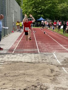 Nele-Maxima Siegl hatte sich einen 3-Kampf zusammengestellt aus 100m, 300m und zum Schluss den Weitsprung. Die Eröffnung machten 100m, zum 2. Mal erst unter 14 Sekunden in 13.98 Sekunden. Es folgten die 300m in 46.85 Sekunden, was einer Verbesserung der PB aus diesem Jahr um mehr als 2 Sekunden bedeutete. Für den Weitsprung dicht danach waren dann nicht mehr alle Kräfte mobiliserbar, doch die 4.44m waren die beste Weite der Konkurrenz und somit wurde auch sie Frankenmeisterin im Weitsprung der W15. (Die Trainingsgruppe freut sich schon auf die Runde, die Nele-Maxima zu schmeißen hat wegen der 3fachen 4)