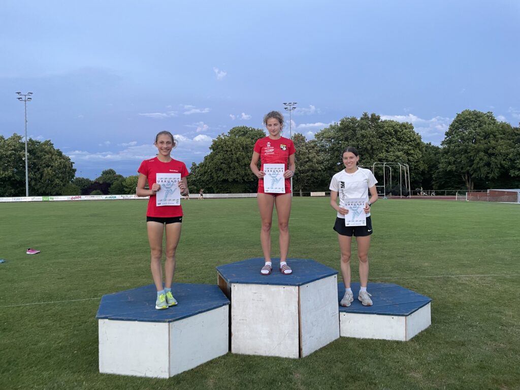 Das 19. Abendsportfest des TSV Köngen war am 12.07.2023 als letzte Formüberprüfung vor der Jugend DM der Leichtathleten in Rostock im Wettkampfkalender von Marie Brand eingetragen. Unterstützt von Nicola Goller aus der Trainingsgruppe von Landestrainer Jens Boyde am Stützpunkt Heilbronn machte sich Marie um 20.40 Uhr auf die 3 3/4 Stadionrunden. Bei freundlichen Temperaturen und von den kräftigsten Böen durch Nicola geschützt passierten Sie die 800m in 2.34 und setzten sich zusehends vom Verfolgerfeld ab. Auf der Zielgerade konnte Marie an Nicola vorbeiziehen und erreichte in neuer PB von 4.51,26 Minuten als Erste des Laufes das Ziel. Mit dieser Zeit wurde sie in der gemeinsamen Wertung beider Zeitläufe 2. der WJ U20, da für die WJ U18 keine 1500m im Angebot waren.