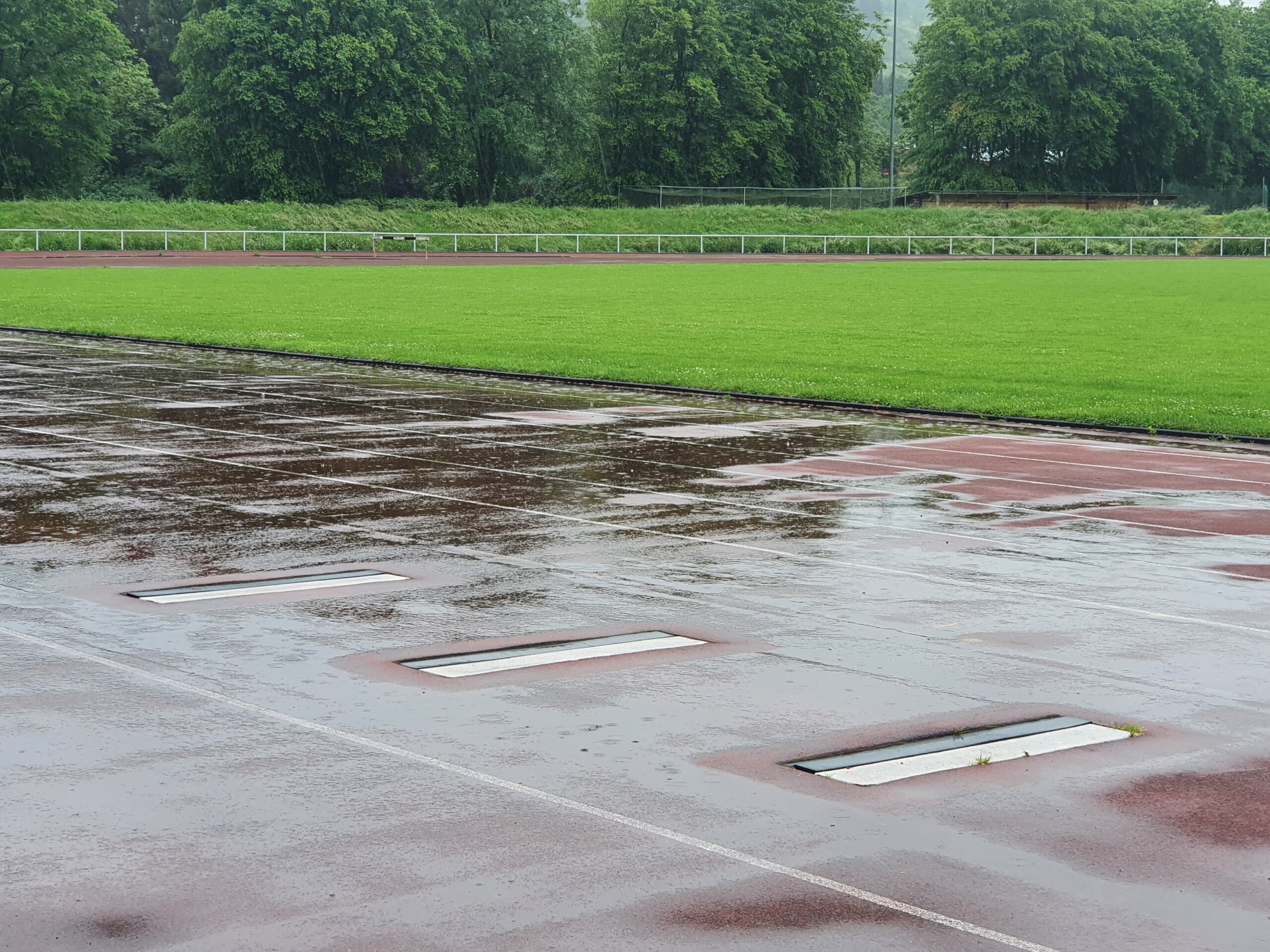 Auch bei den höheren Altersklassen stehen wichtige Wettkämpfe im Juni an. Ingolstadt, Karlsbad-Langensteinbach und dann auch Walldorf sind die Orte, an denen die Läuferinnen und Läufer ihre Monate der Vorbereitung seit Oktober 2023 in Wettkampfergebnisse übertragen wollen. Mit dem Ziel vor Augen trainiert man dann auch am 01.06.2024 um 11.00 Uhr im Stadion, wenn der Trainer eine Wettkampfsimulation in den Plan geschrieben hat, bei, nun ja, nennen wir es „suboptimalen Bedingungen“.