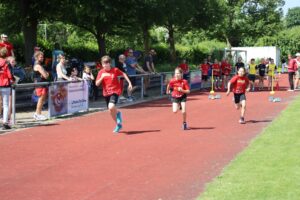 Vom Orga Team unter Leitung von Susanne Allemann und Sabine Dietzel wurden die Kinder in Riegen udn dann in Gruppen von mehreren Reigen eingeteilt und absolvierten 5 Stationen. Dazu gehörte ein Sprint, eine Hindernisstaffel, Zonenweitsprung, Wurf mit Fahrradreifen, Biathlonstrecke oder Crosslauf je nach Altersklasse.