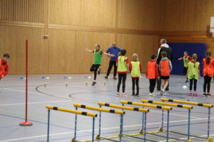 Das vielseitige Wettkampfprogramm bot eine beeindruckende Bühne für die Nachwuchstalente. Die jungen Sportlerinnen und Sportler stellten ihr Können in den Disziplinen 20-Meter-Sprint durch die Lichtschranke, Medizinballstoß, Hoch-Weitsprung, Weitsprung in die Zone und der mitreißenden Hindernissprint-Staffel unter Beweis.